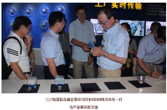 7月14日下午,日本KDDI株式会社社长田中孝司一行在研讨会结束后专程到伟德国际1946bv官网参观,鹰潭高新区党工委书记李卫国、鹰潭市外侨办主任谢雯、伟德国际1946bv官网副总裁吴雪松全程陪同参观。在整个参观过程中,日本KDDI株式会社社长田中孝司数次发出“Great!”的赞叹。在公司展厅的产品展示区,KDDI株式会社一行与吴总开启了一问一答的互动模式,一行人对NB-IoT光电物联网水表以及NB-IoT超声波水表甚为感兴趣,从水表结构、抄表方式、信号传输方式、数据传输&传输频率、电池容量&使用年限等多方面的对这两款水表进行了解。