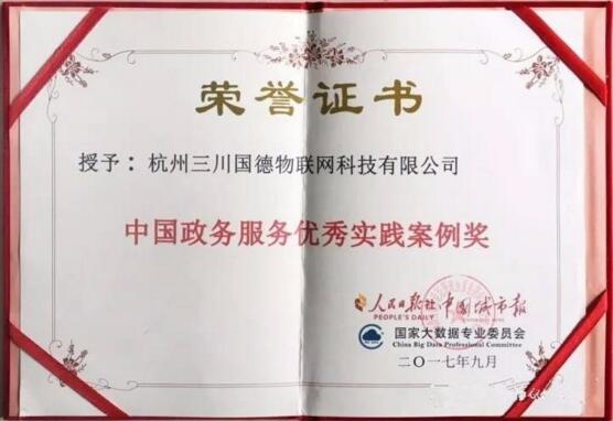 伟德国际1946bv官网子公司杭州伟德国际1946bv官网国德物联网科技有限公司凭借自身在公用事业水务领域的积极探索开拓、综合技术能力和优秀的智慧水务案例得到了学术与行业领域的权威认可,被大会授予“中国政务服务优秀案例奖”。